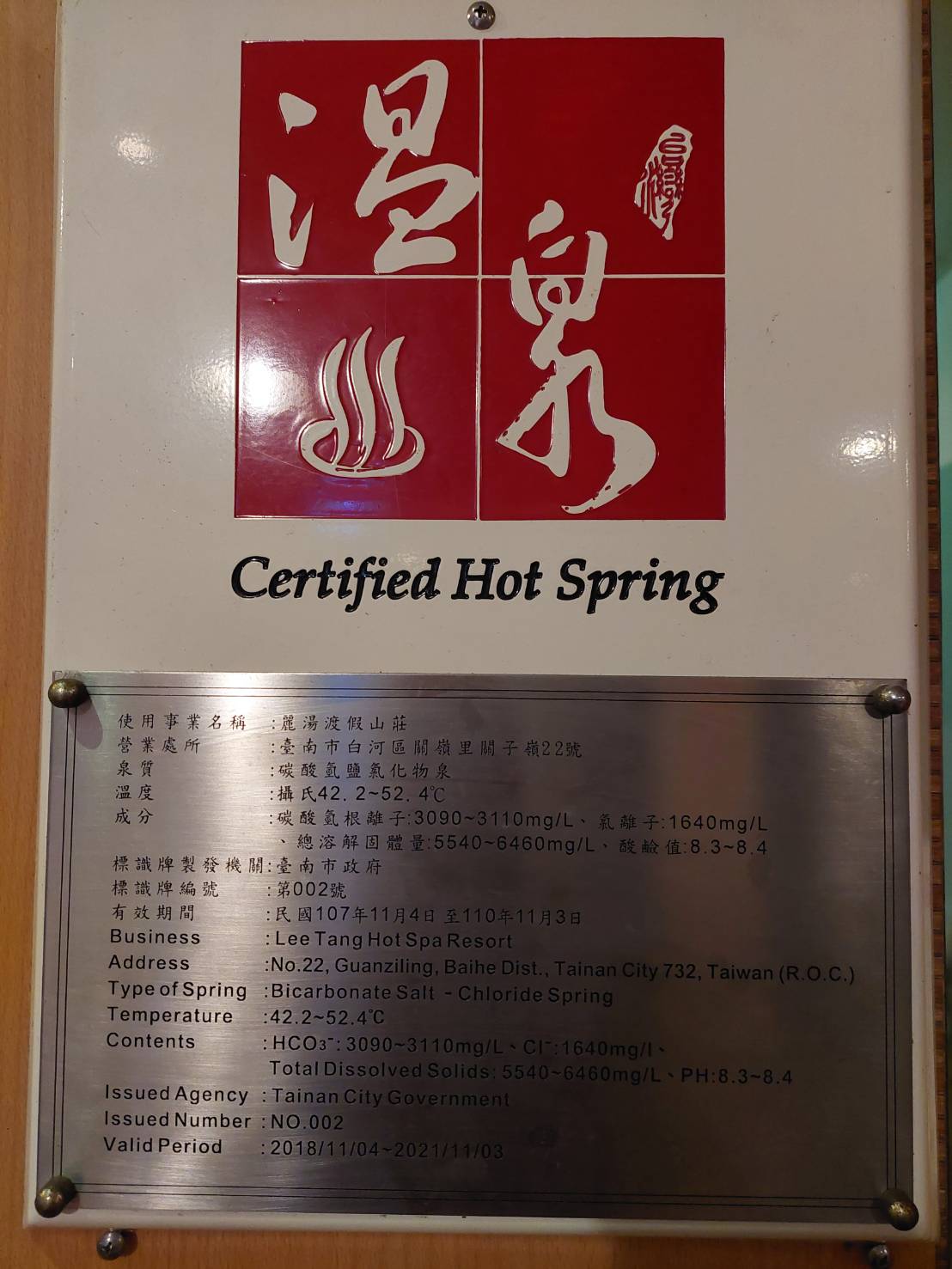經濟部核發之合格溫泉水權狀是我們溫泉水的最佳保証書,擁有著全台少有的泥漿溫泉,關子嶺的溫泉是許多樂中此道者心中的珍寶。