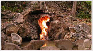 位於台南縣白河鎮關仔嶺風景區內,枕頭山麓西南側,又名水火洞,其地質特殊,壁上冒出的天然氣可使點燃的火焰永不熄滅;但同時又有泉水從崖壁細縫中潺潺流出,形成水中有火,火中有水的特別景觀,令人驚訝水火能同時並存。