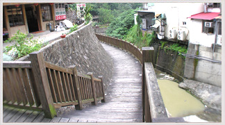 沿著溪畔的散步步道,在泡湯之餘,也能夠欣賞週邊的山林景觀。