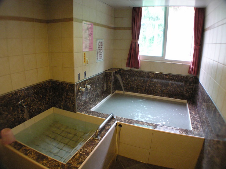 :取溫泉水澆身數次以後適應水溫(從手腳尖腿腰等身體末端再逐漸往身體中央使身體適應水溫。)